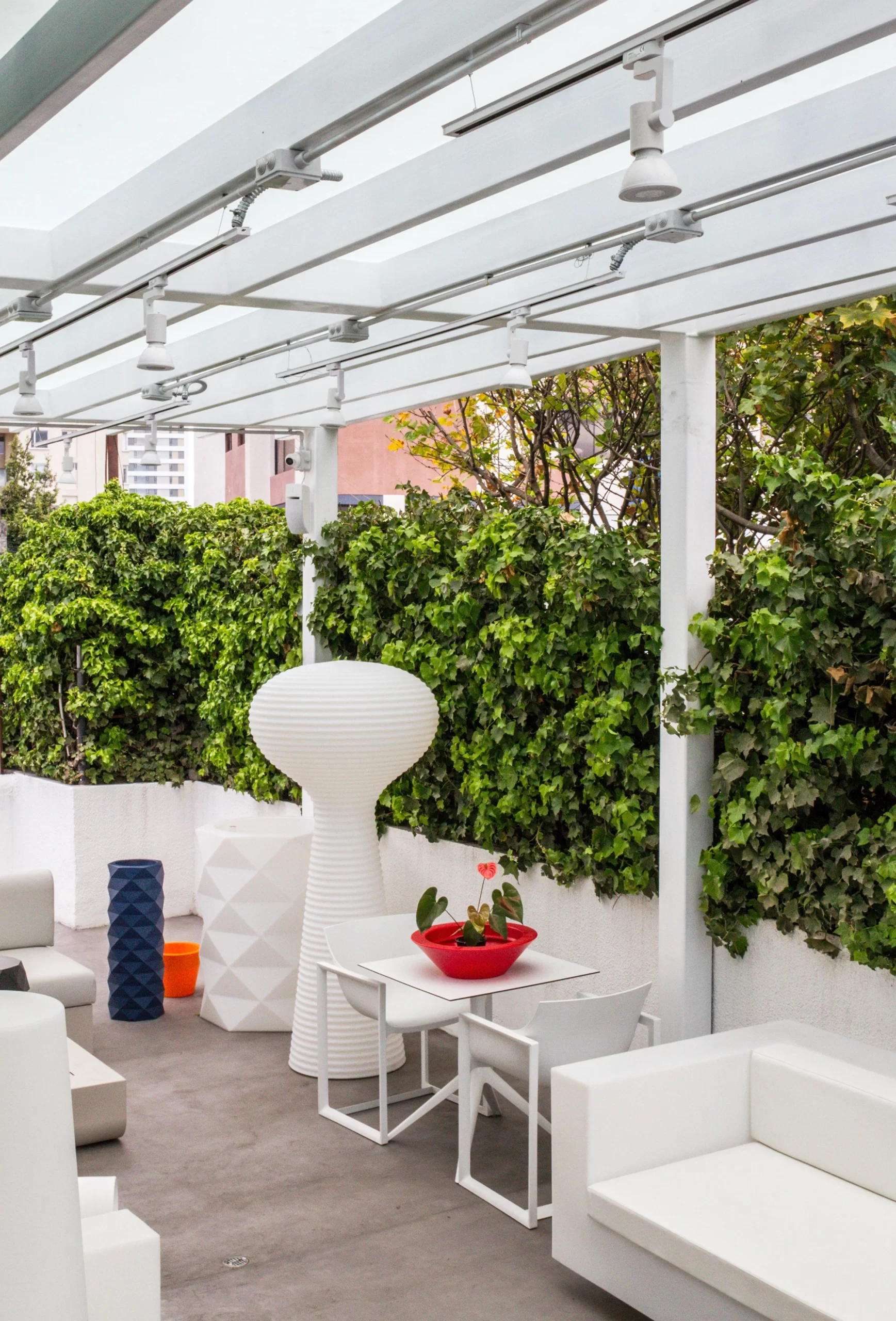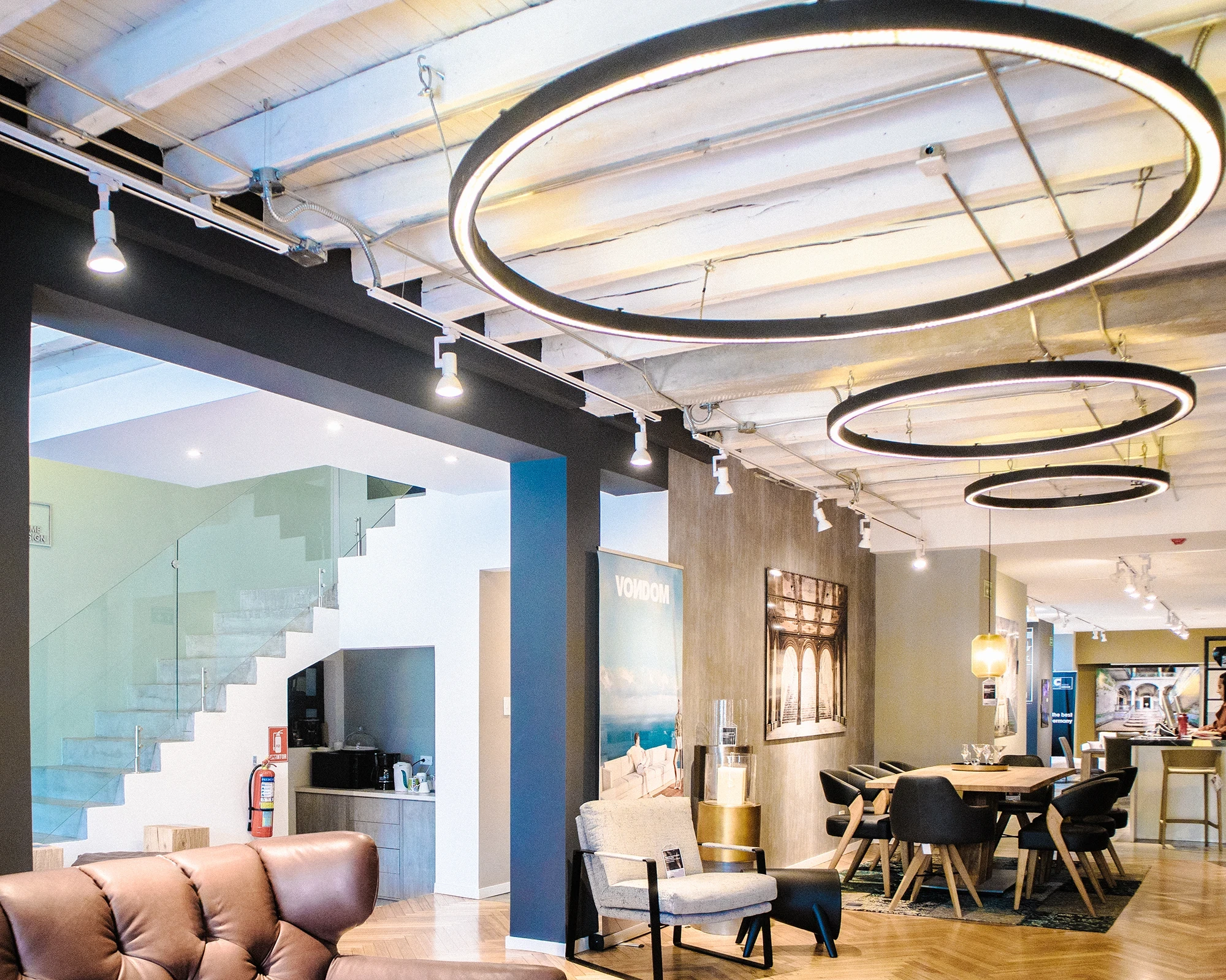 Esta marca se caracteriza a nivel mundial por su impactante entrada que consta de 3 lámparas circulares, mismas que fueron recreadas por mano de obra local, optimizando recursos y materiales en su fabricación.
