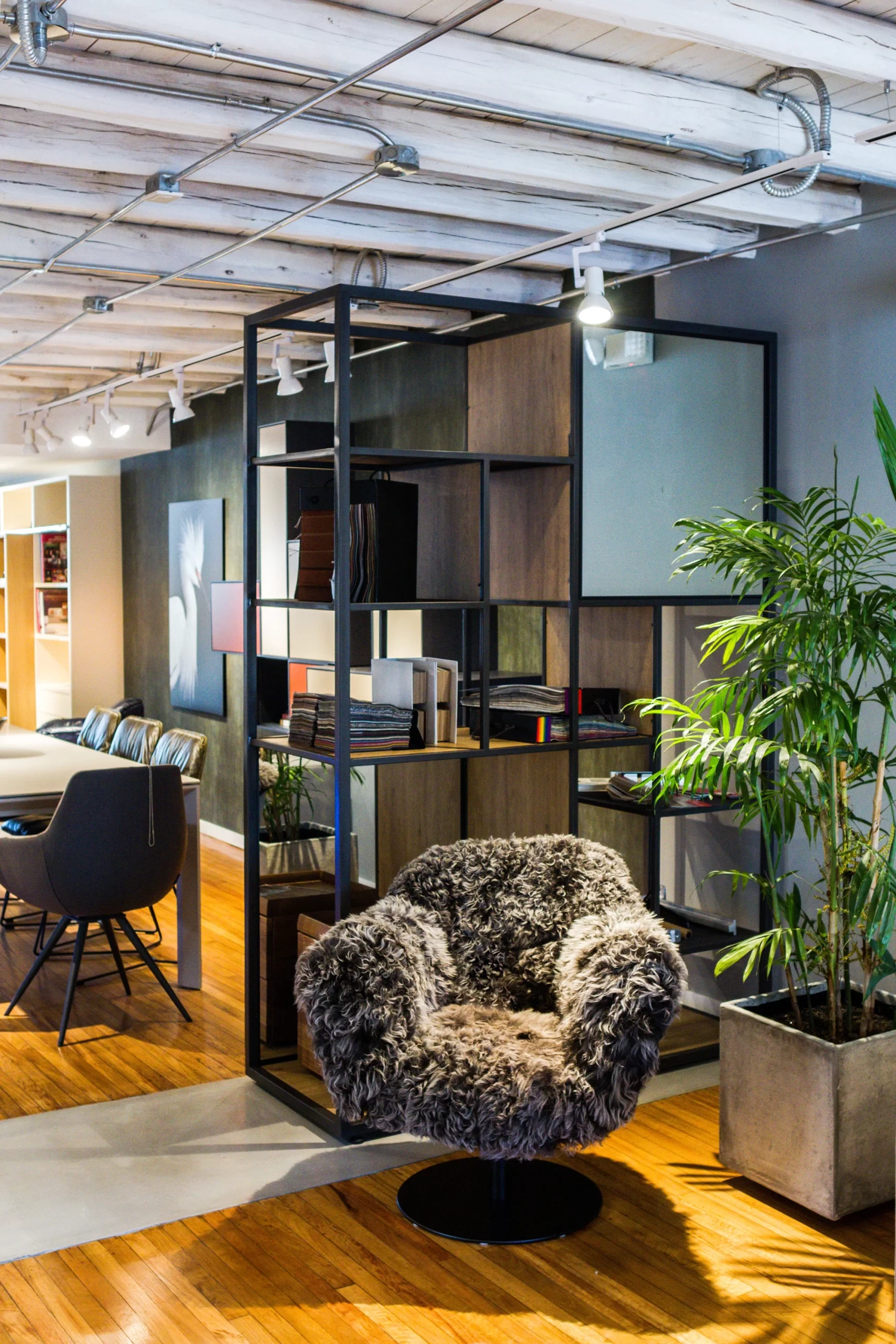 Remodelamos una casa antigua de Quito para Garant Home Design. Se restauraron elementos originales, como pisos y techos de madera, para resaltar sus productos y hacer de este un espacio acogedor.