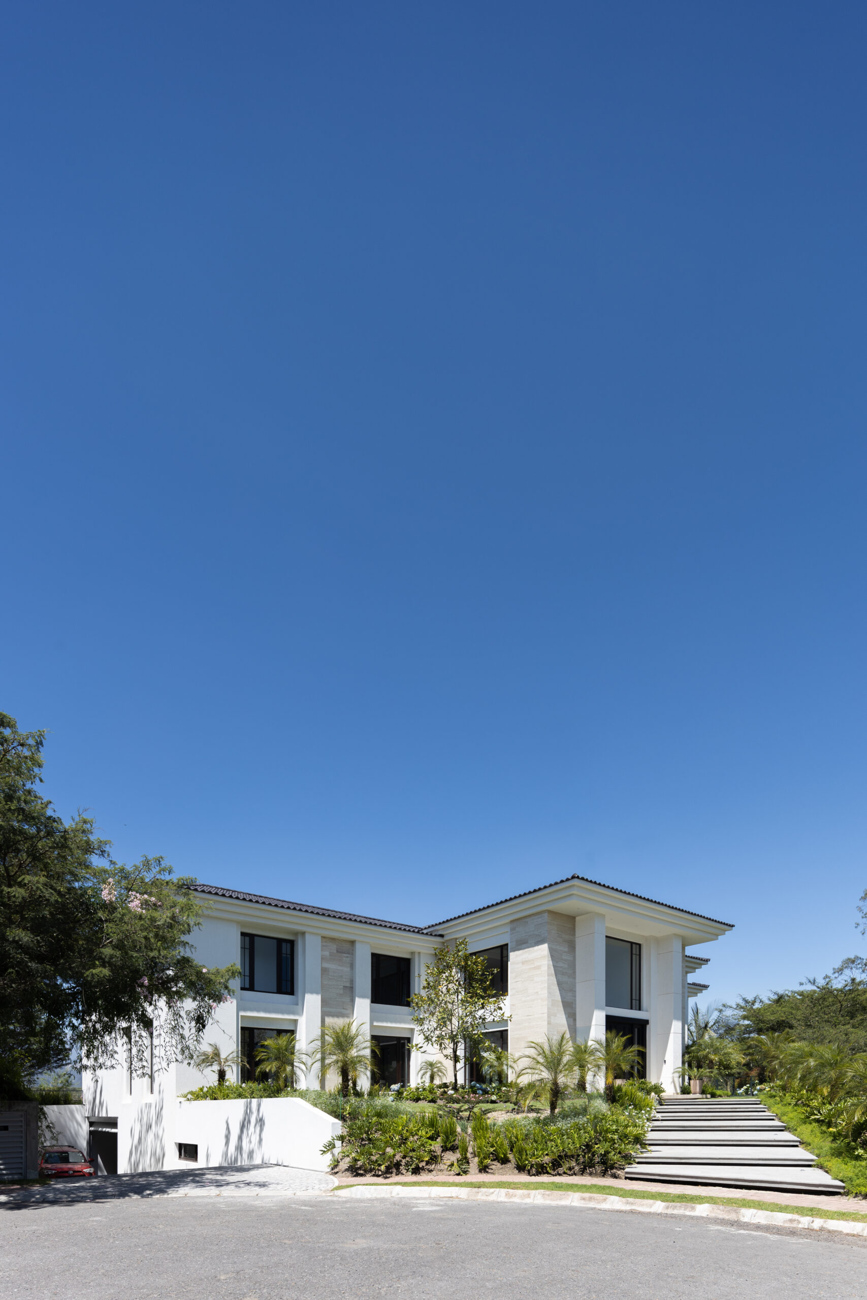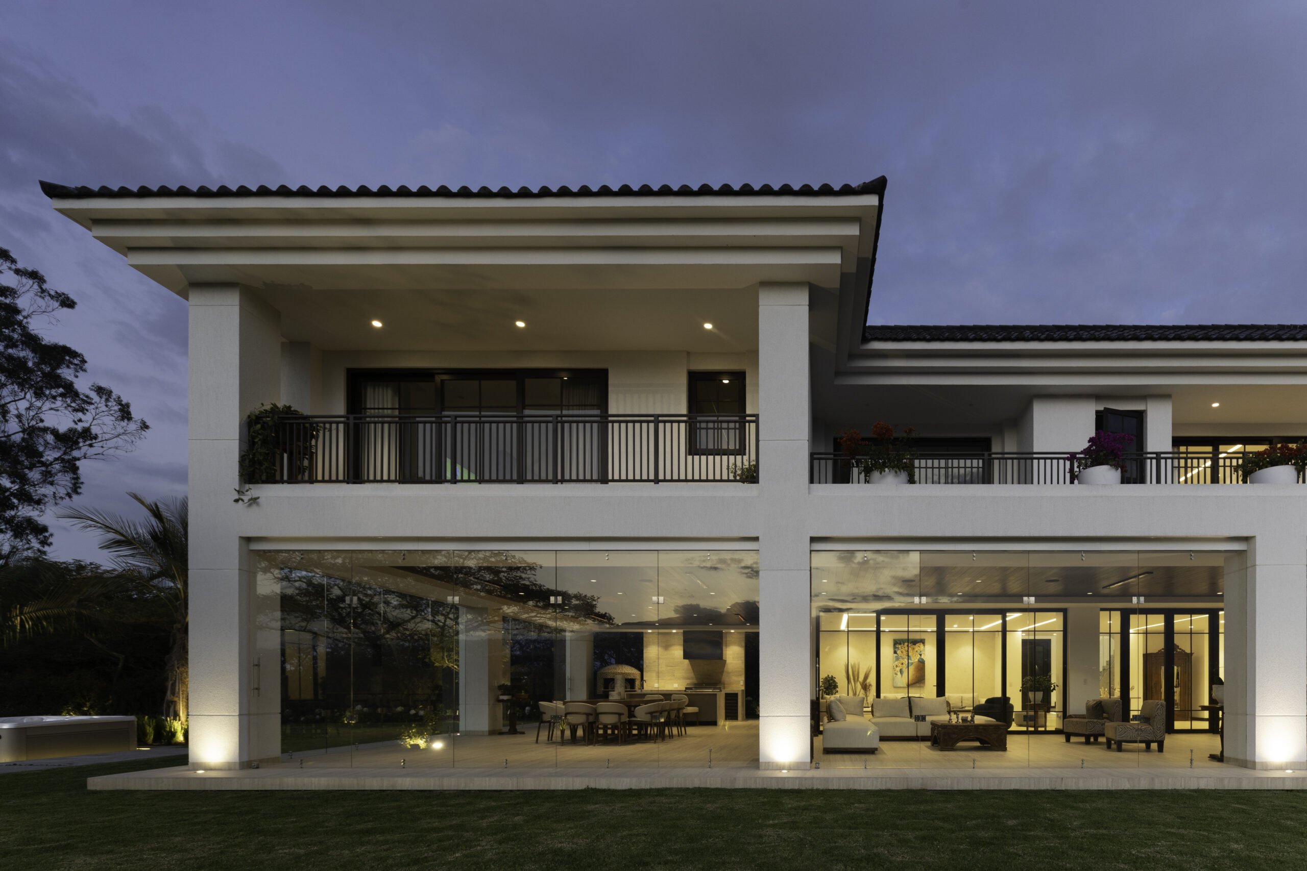 Una casa clásico-moderna expresada por sus aleros con cornisas y techos inclinados de teja. Desde el interior se enmarca la vista por medio de detalles arquitectónicos en fachada, generando cuadros naturales en sus ventanales. La casa GH busca ser un proyecto sobrio y elegante.
